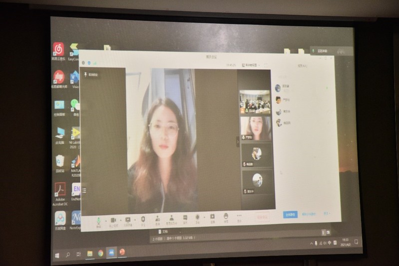 线下分享结束后,现场通过大屏幕连线准备线上分享的三位机械毕业生。