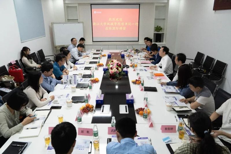 3月29日,实践团首先来到国际精密集团。上午在国际精密办公楼举行了校企合作座谈会。国际精密集团总经理吴凯平、首席财务官谭耀忠、助理总经理张世林,浙江大学华南工业技术研究院副院长王正肖等参加了座谈。座谈会上项淑芳书记首先对国际精密集团的发展和对制造行业的贡献给予了高度的赞扬,对该集团在浙大机械设立奖学金捐资助学表示诚挚感谢,并且期望能够在原来合作基础上进一步加强与国际精密在科学研究、人才培养和就业实践等方面的合作。项书记指出,浙江大学-国际精密集团联合培养基地是学院与企业之间互相的选择,也是学院近几年推行的要和制造业头部企业以及在各个关键领域占有领先地位的企业共同建立实践基地并开展深入合作。因此希望双方在接下来的时间里通力合作,将基地工作做好做实,从为国育才角度出发开展丰富有效的活动。
