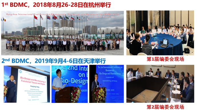 BDM期刊在创刊当年,即发起了与期刊同名的系列学术会议“生物设计与制造及生物材料国际会议”(International Conference on Biomaterials,Bio-Design and Manufacturing(BDMC))。目前已经于2018年和2019年在杭州和天津成功举办了两届,会议主席同期刊主编,每年会议期间同时举办闭门编委会。利用大会征稿充实期刊稿源,利用大会报告宣传期刊发表论文,目前编委会议也已经成功举办两届。2020年因为疫情得缘故,原定于在葡萄牙举行得第三届BDMC推迟到2021年举行,2022年已经确定在英国牛津举办。
