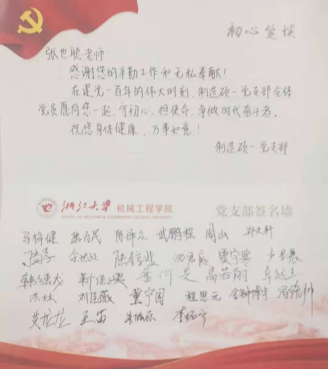 图注:党支部赠送给张世聪老师的祝福贺卡