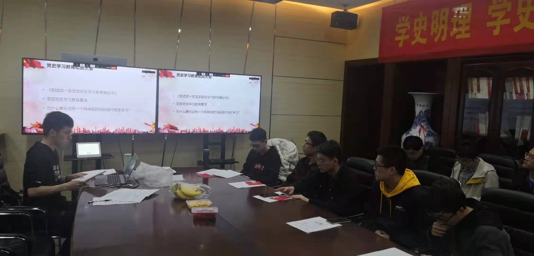 换届会议结束后,马梓健同志进行了党史教育活动动员宣讲。他指出:2021年是中国共产党成立100周年。为从党的百年伟大奋斗历程中汲取继续前进的智慧和力量,深入学习贯彻习近平新时代中国特色社会主义思想,结合党中央的要求,落实学校、学院有关文件精神,结合本支部实际情况,支部将在学生党总支的指导下开展党史学习教育活动,并制定党史学习活动策划书,更好地落实活动实施全过程。