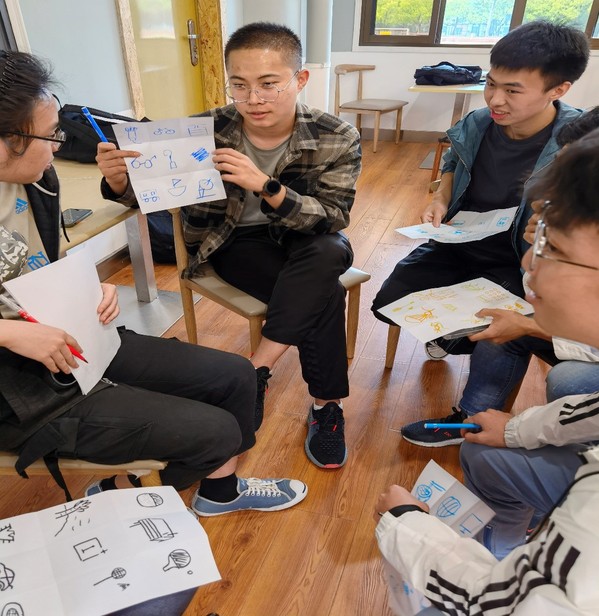 第三个环节是“手绘我心”。邵瑾老师要求每位同学画出九样和自己相关的图画,并在小组内轮流分享所绘图画中喻义的生活点滴。通过这个环节帮助小组成员之间建立更深入的了解。