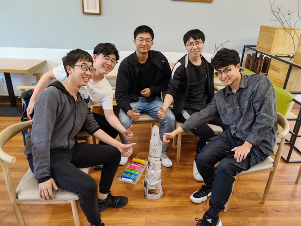 最后的环节是团队合作活动“搭高塔”。邵瑾老师为每个小组提供了八张报纸,一卷胶带,并要求在搭建过程中不能有任何交流。随后同学们在各自组内发挥创意,分工协作,搭出了不同特色的“高塔”。在这个活动中同学们体会到了个人与团队之间的相互作用,通过合理分工与合作,培养了团结一致、密切配合的团队精神。