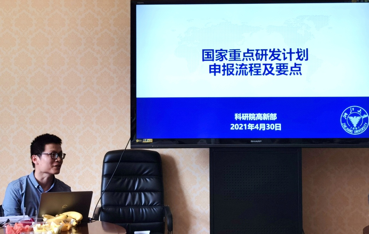 浙江大学科学技术研究院高新技术部马行超副部长应邀在论坛上作了主题为《国家重点研发计划项目及其青年项目的申请流程与政策》的精彩报告。马行超副部长首先从国家总体思路、重点专项布局以及项目申报主要程序等方面简要介绍了“十四五”重点专项概况,进而详细的讲解了科研项目申报流程及要点,具体包含项目指南发布内容、项目预申报书、项目形式审查、项目正式申报和视频答辩五大要点,并耐心细致的为各位老师解疑答惑,交流现场热烈而融洽。