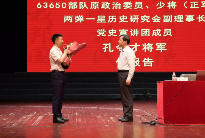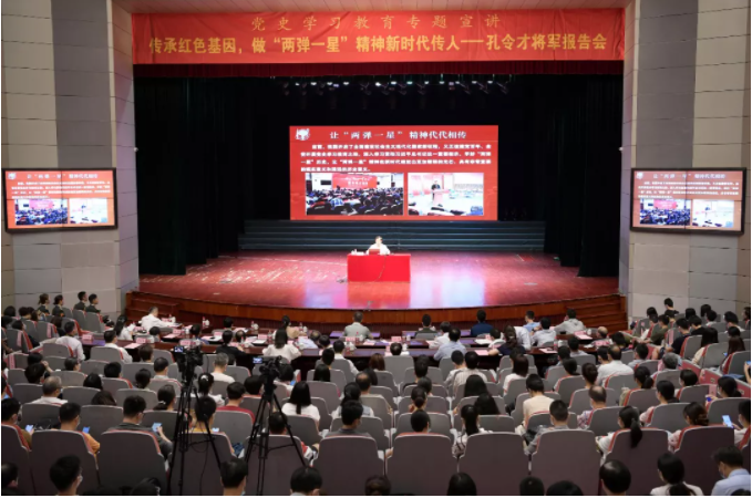 某部队原政治委员、少将(正军职)、两弹一星历史研究会副理事长、党史宣讲团成员孔令才来到浙大,作了题为《牢记习近平总书记重要嘱托 让“两弹一星”精神代代相传》的主题报告,与浙大师生一同追忆攻关“两弹一星”的激情岁月,用丰富生动的历史细节,分享了“两弹一星”研制过程中体现的热爱祖国、无私奉献、自力更生、艰苦奋斗、大力协同、勇于攀登的“两弹一星”精神,鼓舞更多有志青年奔向伟大的国防事业。浙江大学党委副书记邬小撑、浙江大学党委原常务副书记陈子辰等出席报告会。