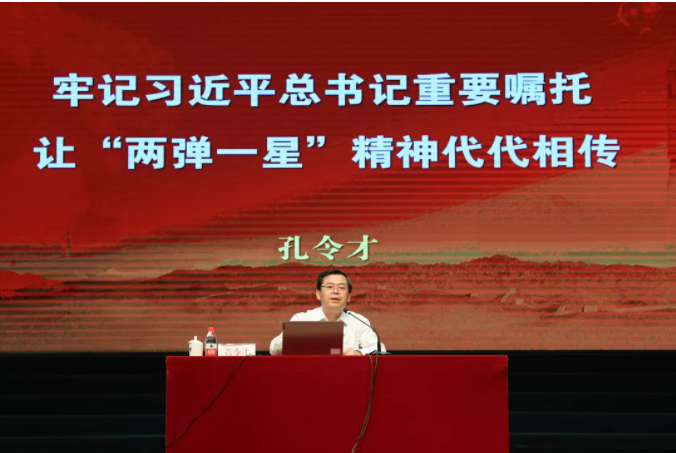 孔令才将军强调,“两弹一星”精神是爱国主义、集体主义、社会主义精神和科学精神的集中体现,是中国人民在20世纪创造的宝贵精神财富。身为新时代的大学生,要将“两弹一星”精神融汇各行各业,体现强国意志、增强民族自信、强固奋斗基因。时刻牢记国家利益高于一切、党的事业大于一切、忠诚使命重于一切。