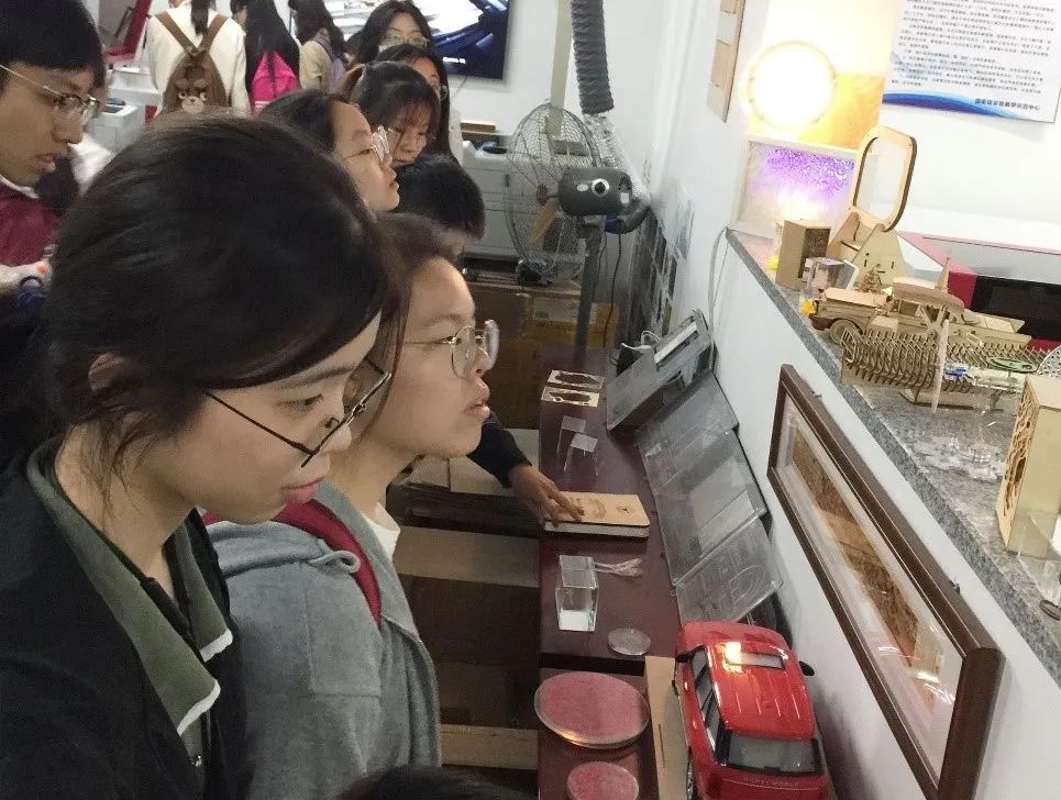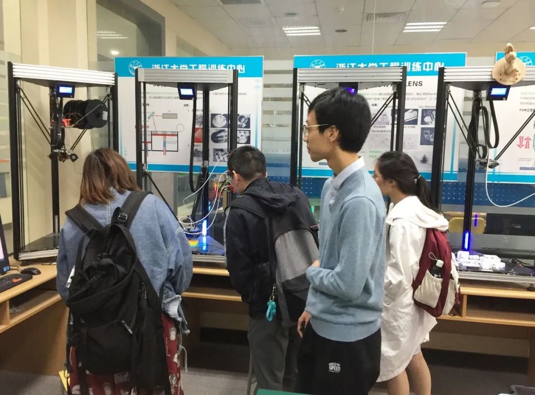随后,张林初书记带领同学们参观了训练中心3D打印、激光雕刻等课程实践和研究的场地与成果。张老师向同学们介绍了工程训练中心新开设的全校通识课“工程实践认知体验”,该课程主要为文科生提供动手实践的机会。张老师还介绍了浙江大学3D打印中心,为全校同学开放3D打印服务。