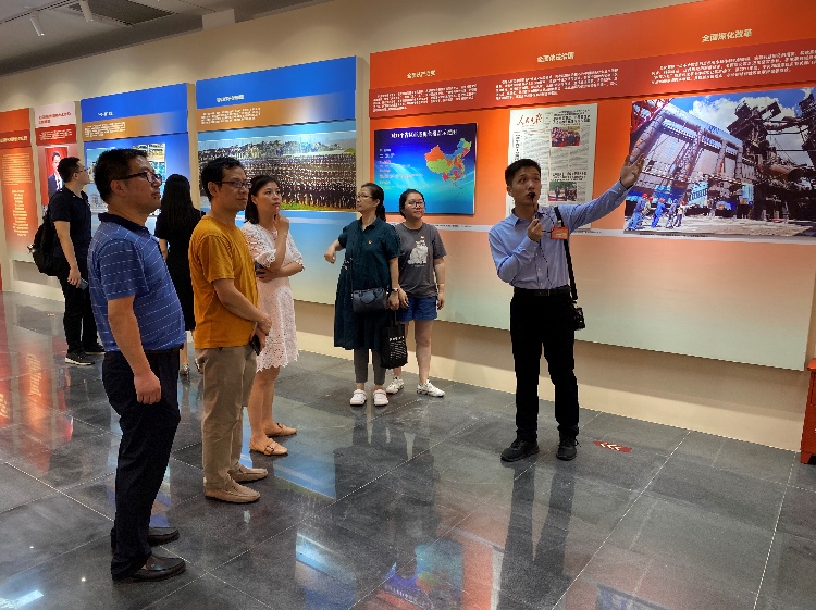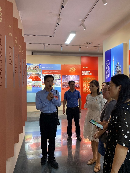 接下来,全体成员来到位于西区的党建馆。党建馆分为“红船精神”和“浙江大学党建工作”两个主题展厅。通过学生讲解员和现场图文资料的介绍,党员们对红船精神核心内涵有了更深刻的认识,同时也从历代浙大人的身上看到了熠熠生辉的信仰之光,感受到了身正为师、行为世范的榜样力量。从竺可桢、费巩,到于子三、虎罴,再到程开甲、林俊德,一代代共产党人用热忱甚至生命诠释着“求是”精神。大家在现场也看到了非常多的机械元素,无不感到鼓舞和振奋。
