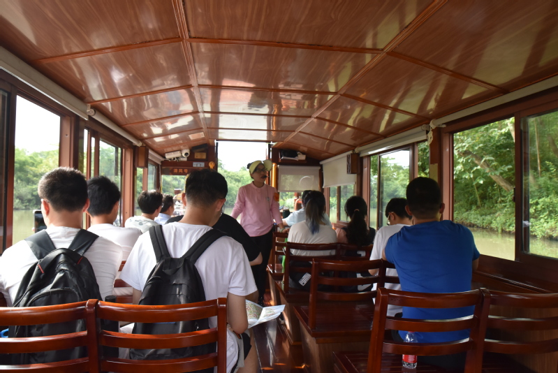 随后,一行人赶赴西溪廉韵清廉文化教育专线参观学习。大家一同乘坐“清风号”游船,踏上“清廉之旅”。“清风号”一路前进,眼前清水荡漾,两岸绿树环绕。让人在“一曲溪流一曲烟”中,体验宁静致远,感悟清风廉韵。上岸后大家在讲解员带领下寻访蒋相公祠,蒋相公祠世称“蒋公庙”,是后人为纪念宋代乡贤蒋崇仁、蒋崇义、蒋崇信三兄弟坚守道德高地、坚持公平买卖、救济百姓六十余载的感人事迹而设立的。祠内“蒋相公小传”通过碑刻形式,展现蒋氏兄弟“性醇厚、喜赈施、存仁心、行好事”生动故事,让大家深刻感受到了“德仁义信”的蒋氏家风。