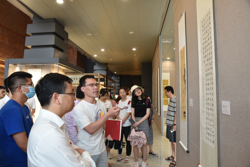 “百年初心”浙江大学第四届“清心正道”廉政书画展于6月15日在紫金港校区图书馆古籍馆拉开序幕,本次书画展为学校庆祝建党百年活动之一,入展作品涉及书法、篆刻、绘画等,围绕百年党史,用中国传统艺术形式阐释了“清正廉洁”的丰富内涵。学院特别邀请了本次入展作品的作者代表,我院退休教师金龙儿、学生赵航和高晓勰担任“清风讲堂”宣讲使者,带领大家现场赏析作品。跟随着三位师生代表,大家深刻感受到了廉政文化艺术的魅力,尽情享受了一场传统文化和清廉文化的盛宴。