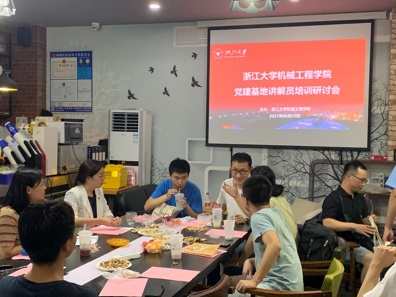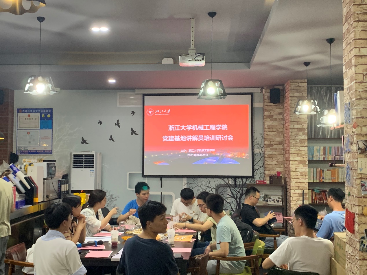 为庆祝建党100周年,全面提升机械工程学院党建教育基地讲解员综合素质,推动党建教育基地高质量发展,2021年6月25日,浙江大学机械工程学院于紫金港校区水墨云峰召开2021年度党建基地讲解员培训研讨交流活动。