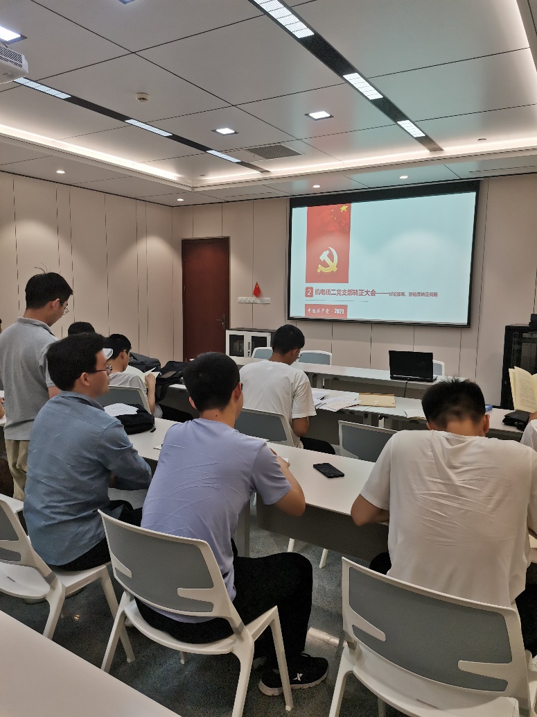 最后,机电硕二党支部依次讨论了张铂炅和邵周同志的转正问题,张铂炅着重从自己进行风力发电机的科研学习和对党的基本理论学习情况进行汇报,邵周着重从自己在红色景点的走访学习,自己毕设的情况进行了汇报。接着入党介绍人、支委会、与会党员分别介绍了两位转正的意见。支部最终依次对两位同志的转正问题进行表决,一致同意两位同志按期转正。两位同志也表态说要继续加强党史和基本理论的学习,要在之后的学习和工作中发挥党员的先锋模范作用,用自己的行动来诠释求是精神。本次参观学习和转正会议也圆满结束。