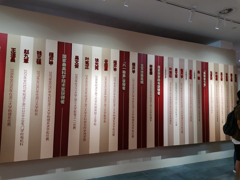 接下来,全体成员来到位于西区的党建馆,浙江大学党建馆位于求是大讲堂负一层,2019年11月11日正式开馆。展馆由“红船精神主题展”和“浙江大学党建工作主题展”构成。通过讲解员的介绍和图文资料的展示,大家对红船精神中“开天辟地、敢为人先的首创精神”的内涵更加清晰,认识到红船精神使中国革命从此有了坚定的理想信念和强大的精神支柱,是中国革命精神之源。浙江大学党建工作主题展”由学校原创设计,通过图片、文字和实物资料,宣传浙大师生校友在革命、建设、改革时期中涌现的英雄烈士和模范人物。在展览中特别设置功勋墙,彰显了以“两弹一星功勋奖章”获得者、国家最高科学技术奖获得者、“八一勋章”获得者、全军挂像英模、国家荣誉称号获得者和“最美奋斗者”为代表的一群杰出的浙大校友。一代代共产党人用热忱甚至生命诠释着“求是”精神,大家在学习中感到鼓舞和振奋,对“求是”精神也更加坚定。