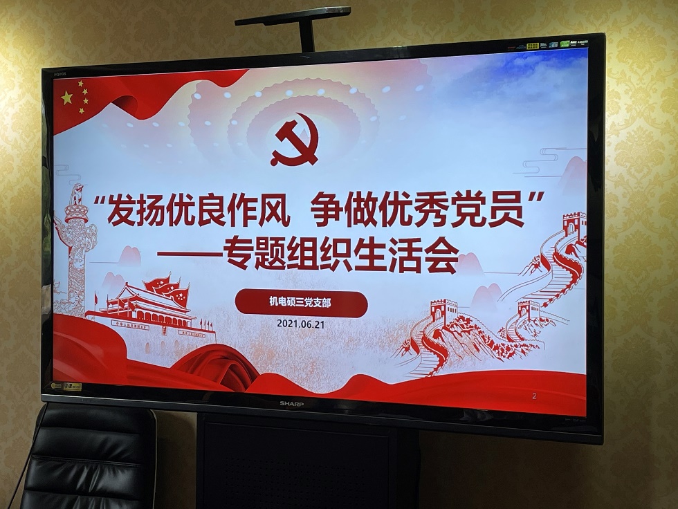 2021年6月21日,浙江大学机械工程学院机电硕三党支部响应机械学院号召,开展“发扬优良作风,争做优秀党员”专题组织生活会。