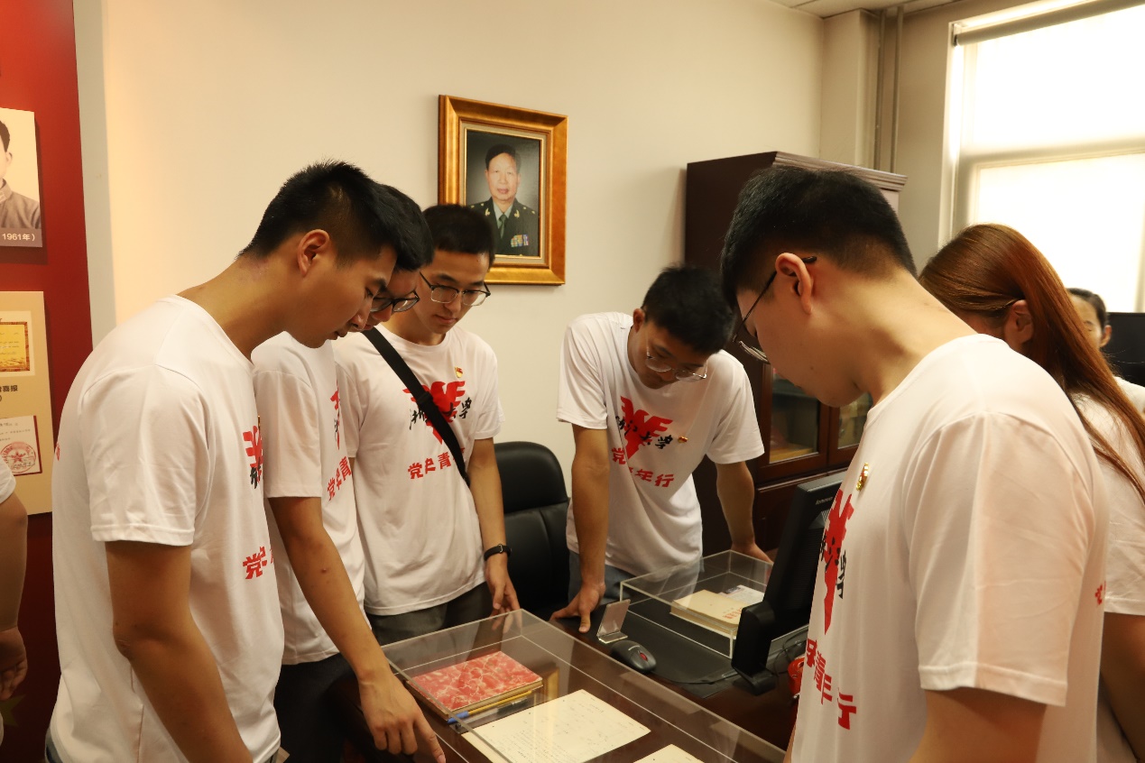 紧接着,实践团跨越千里,又来到了马兰基地某研究院。在讲解员的引导下参观了展览馆,了解了我国原子弹、氢弹的技术发展历程。在这里实践团还走进林俊德院士生前的办公室和科研场所,成员们被林院士一生勤俭质朴、全心全意投身科研的精神所感动。实践团一名成员在几天的调研参观后,深受先辈无私奉献精神的感动,当场写下入党申请书,志愿加入中国共产党,为祖国的科研事业发展不懈奋斗。