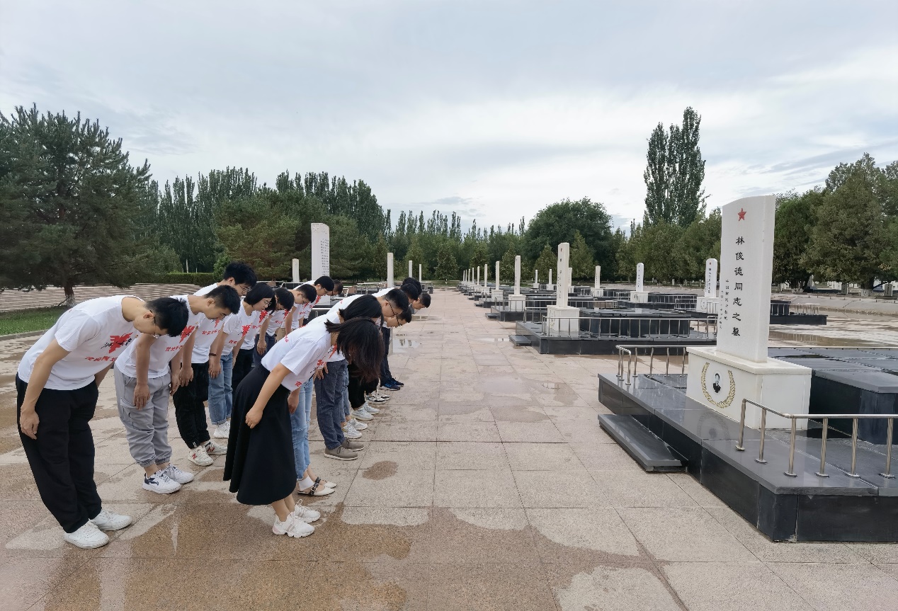实践团一行人首先在营区官兵的带领下,前往马兰烈士陵园瞻仰革命烈士纪念碑,缅怀林俊德院士、程开甲院士等无数隐姓埋名的英雄。每一座墓碑,都代表着一片赤子报国之心,也是爱国奋斗精神最鲜活的榜样!