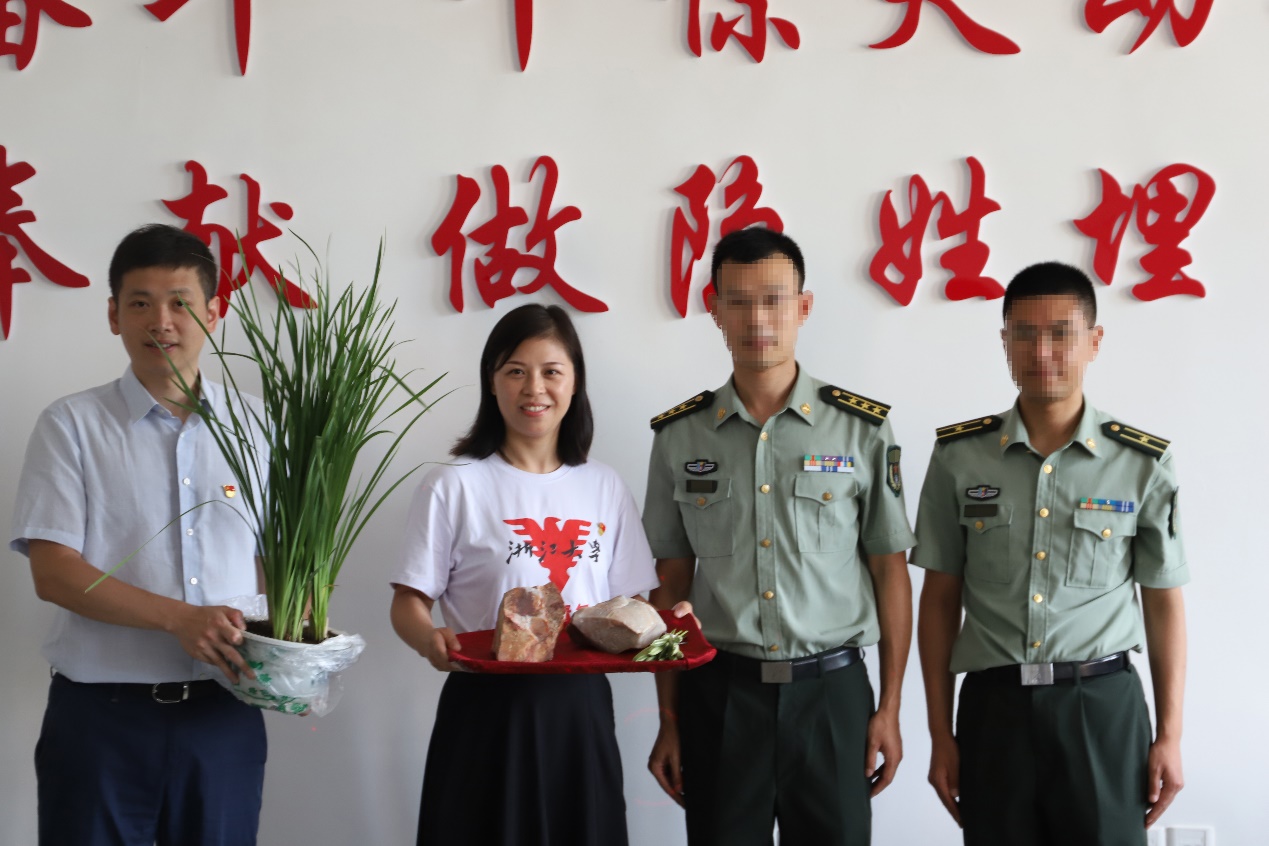 随后实践团的师生与马兰小学的老师代表进行了调研会谈,讨论接下来的支教形式、课程内容等,并为浙江大学林俊德纪念室的建立做了前期调研工作。会上,浙江大学“党史青年行”实践团队还与马兰基地进行了精神信物交换,浙大附小小朋友画的马兰花、马兰基地的马兰花、见证了中国核事业从无到有、从弱到强的戈壁石,都象征着“马兰精神”的传播与延续。