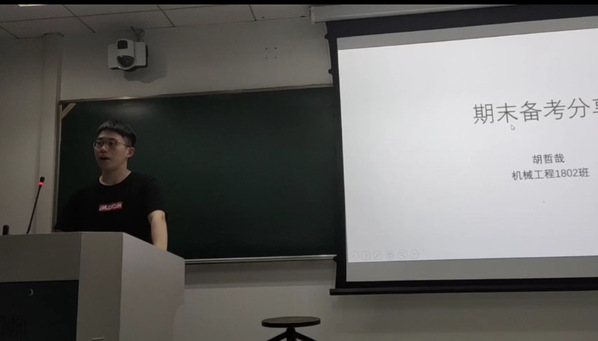 本学期的期末考试已经临近,同学们也逐步调整状态,陆续投入到紧张的复习之中。为帮助同学们高效备战期末考试,6月1日晚7点,机械工程1904班和机械工程1907班共同邀请了18级的优秀学长、国奖获得者胡哲哉学长,在西一415教室举办本学期期末考试经验分享会。分享会由团支书林俊晓主持。