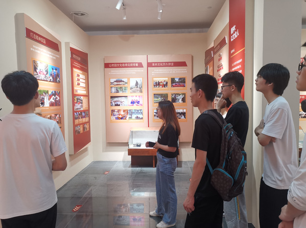 在讲解员的引导下,同学们回顾了中国共产党在革命战争时期英勇抗战的历史,缅怀了老一辈革命家的丰功伟绩。一段段珍贵的文字,一幅幅珍贵的图片,折射着一个政党光荣的历史,记载着一个民族辉煌的瞬间,记载着中国共产党党带领人民争取民族独立和人民解放的峥嵘岁月,为同学们上了一堂生动的集体党课。
