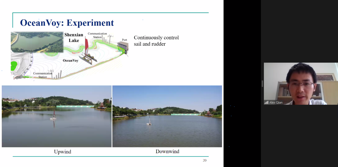 为了满足海洋表面探索不断增长的需求,具有长航程、长航时能力的智能航海机器人对于降低人类参与海洋作业的风险和提高效率至关重要。在本次报告中,钱教授详细介绍了领域内学者们研发不同智能自主帆船的科研进展,面向长航时远距离的航行任务,自主帆船的能源规划是极其重要的一个环节,通过有效的能源规划,自主控制帆船的帆和舵,进一步增强自主帆船长航程、长航时的优势。钱教授的科研团队提出一种混合控制方法并将其应用于自主帆船的能源规划。该混合控制方案包括通过伪谱(PS: Pseudo-spectral)最优控制方法用于船舵控制,以及极限搜索控制(ESC: Extreme Seeking Control)用于风帆调节并提高性能。在此基础上,钱教授科研团队研制的OceanVoy自主帆船已在复杂天气环境下完成了累计超过 1200 公里的航海实验测试。