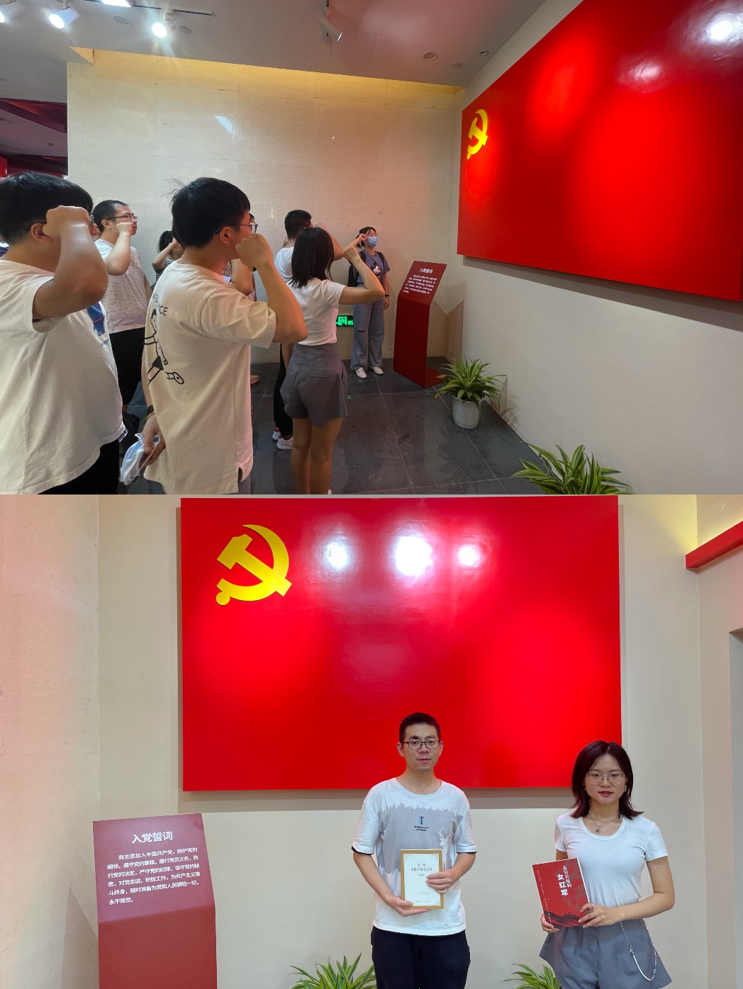 最后,全体支部成员庄严地面对党旗宣誓,重温入党誓词。支部书记王越同志向两位转正的党员同志赠送图书作为礼物。受到总书记“七一”讲话精神鼓舞的支部成员们,必将在未来继续不忘初心,砥砺前行,奋勇争先,追求卓越。