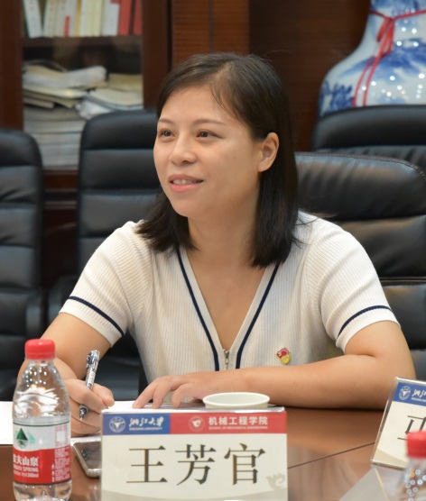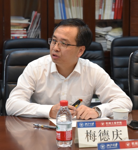 参观结束后,在第一教学楼411会议室举行座谈会,梅德庆主持会议。梅德庆首先对指导组的到来表示热烈欢迎,并围绕“学史明理、学史增信、学史崇德、学史力行”四个方面简要汇报了学院党史学习教育开展情况,机械工程学院坚守政治方向、坚定政治立场、赓续精神血脉、坚持务实担当,扎实推进党史学习教育工作,并介绍了下一阶段党史学习教育工作的具体思路。