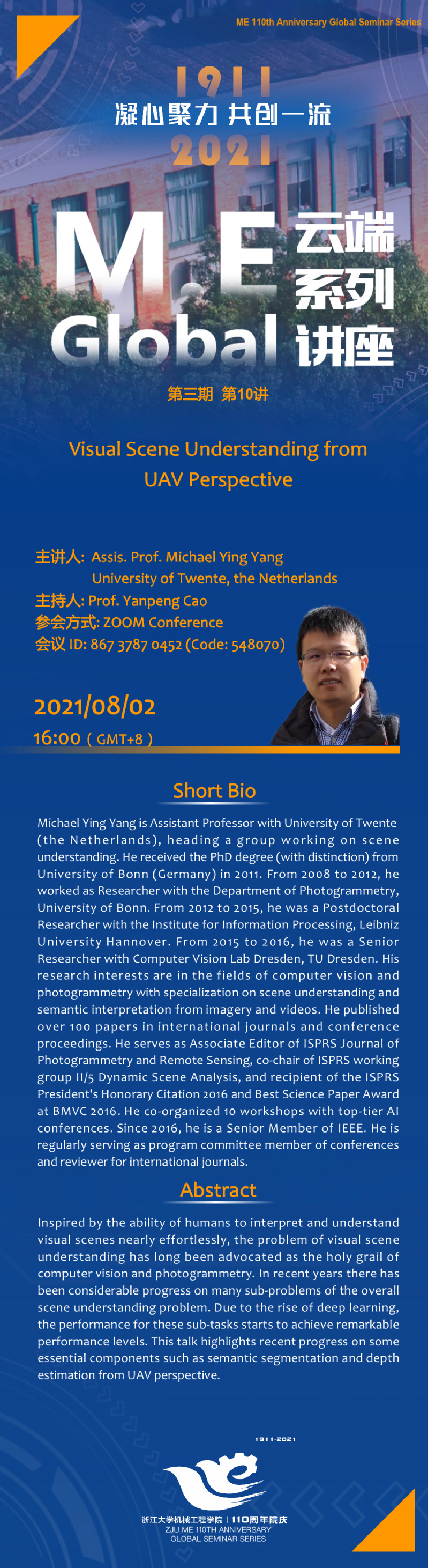 M.E Global Seminar Series第三期第十讲——荷兰特温特大学Dr. Michael Ying Yang报告会的通知
