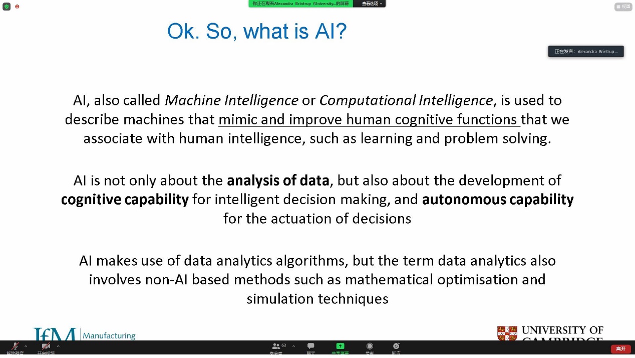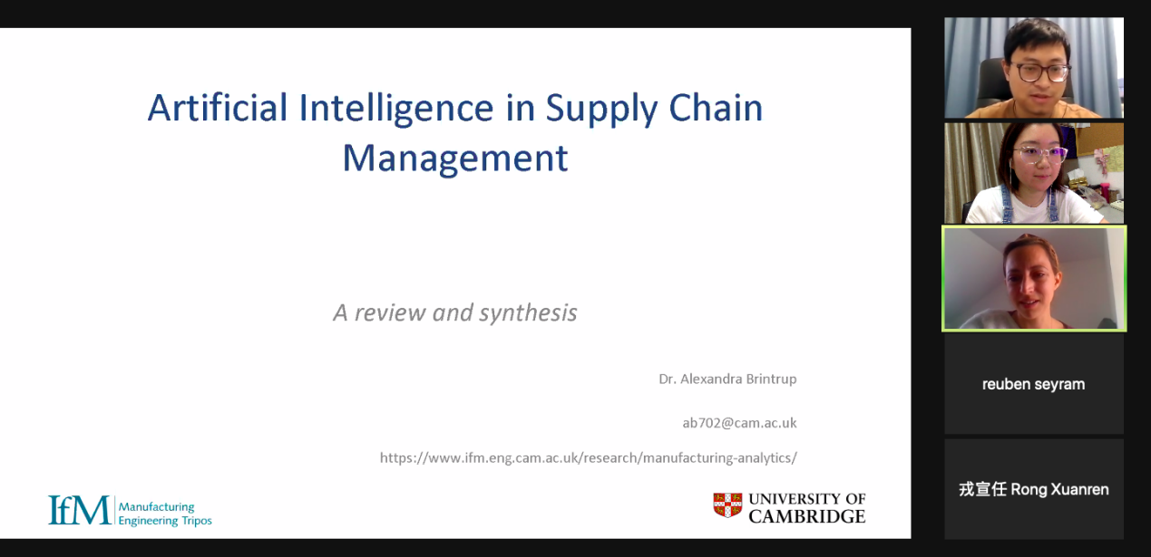 2021年9月17日,应浙江大学机械工程学院邀请,英国剑桥大学Dr. Alexandra Brintrup为我院师生举行了一场线上学术报告会,主题为“Artificial Intelligence in Supply Chain Management”。本次报告会获浙江大学世界顶尖大学合作计划项目支持,由我院彭涛副教授主持,学院近百名师生线上参会。