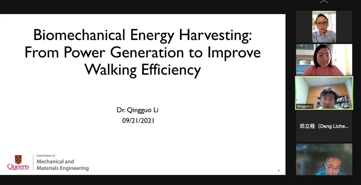 2021921日,应浙江大学机械工程学院邀请,加拿大皇后大学Dr. Qingguo Li为我院师生举行了一场线上学术报告会,主题为“Biomechanical Energy Harvesting : From Power Generation to Improve Walking Efficiency”。报告会由我院刘涛教授主持,学院近百名师生线上参加。
