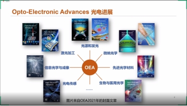 《光电进展(英文)》(Opto-Electronic Advances, OEA)(月刊),创刊于2018年3月,是由中国科学院主管,中国科学院光电技术研究所主办并出版的英文学术期刊,面向国际光电领域高影响力的前沿研究,致力于发表光电领域的高质量原创成果、综述,以及快讯,着重报道光电领域的基础理论原始创新以及工程技术和应用领域的重大突破,主要方向包括:光源和传感器、光电子学、纳米光子学、等离子体和超材料、光学成像、生物光子学和生物医学光学、非线性光学和超快光子学、光通信和光伏技术等。目前已被SCI、EI、Scopus、DOAJ、CA和ICI等数据库收录,入选中国科协“国际影响力提升计划”新刊项目,2021年取得JCR首个影响因子9.636,JCR光学类排名8/99(Q1区)。