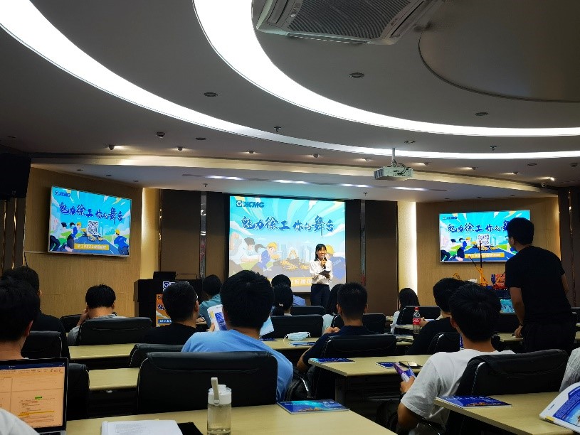 针对此次招聘,徐工集团还详细介绍了新员工试用期全流程的培养过程,及研发型人才的培养举措,在同学们关心的工作生活方面,通过视屏全面展示了徐工集团的食堂,以及部门定期的团建活动(读书、万人运动会、拔河等),充分展示了企业的活力与凝聚力。在同学们最为关注的员工福利上,介绍了集团的无息购房借款及人才公寓等待遇。