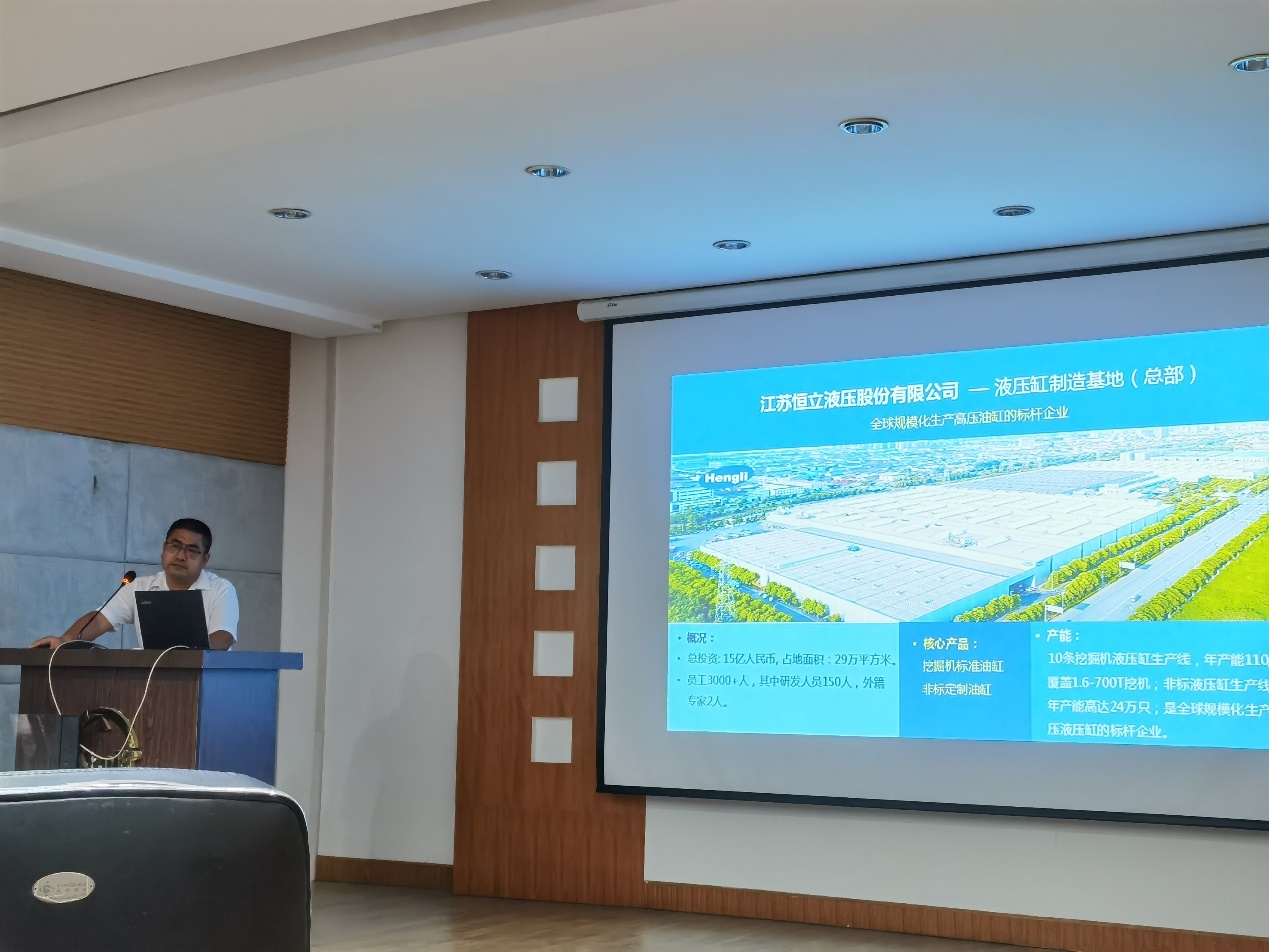 在宣讲会上,江苏恒立液压知识产权部经理李东明从三个方面向同学们介绍公司情况。在江苏恒立液压的基本情况方面,介绍了公司的发展起源、行业地位、研发投入、自主研发实力等;在生产制造方面,介绍了江苏恒立液压的液压元件及系统控制生产、液压缸制造基地、液压元件生产基地,以及市场业绩等;在员工岗位待遇与发展培养上,介绍了各个岗位需要的人才类型、人才福利待遇及一对一的导师制等。全方位的向同学们介绍了公司的基本情况,以及同学关切的待遇问题。