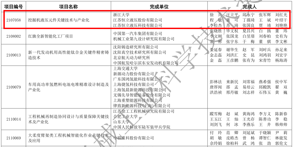 近日,2021年度中国机械工业科技奖建议授奖项目目录发布。我院徐兵教授领衔、张军辉研究员、苏琦助理研究员参与的《挖掘机液压元件关键技术与产业化》项目荣获一等奖。