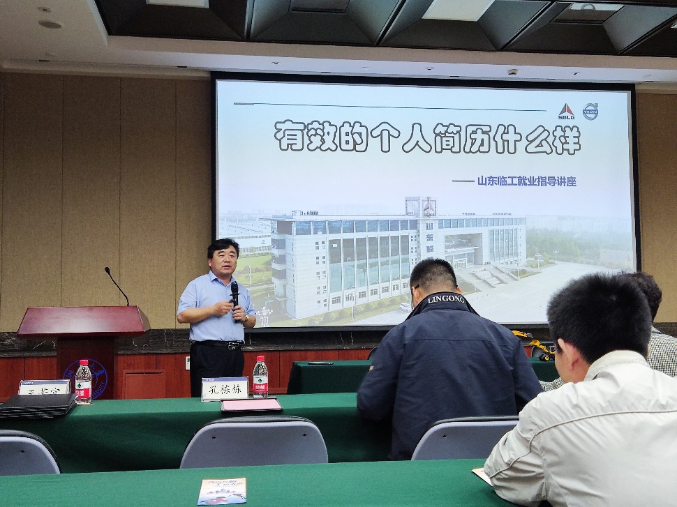 整个宣讲会主要由简历书写就业指导和临工集团宣讲两大部分构成。首先,人力资源本部副部长付正洲先生根据自己多年的面试经验,从面试官的角度给同学们讲解了个人简历的内容布置和书写方法,并强调了研究课题内容及研究成果详细展示的重要性。同时付先生也针对简历中联系方式、个人照片以及文字书写问题给出了一定的建议。