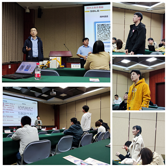 宣讲会的尾声是问答环节,先后有近10名同学从各个研究院工作岗位、专业对口、工作研究具体内容、工作地点和时间、性别因素等方面进行发问。宋经理、付部长和胡经理给同学们进行了细致解答,让同学们对临工有了更加全面的了解,有很多有求职意愿的同学们纷纷开始现场投递简历,最后招聘会在掌声中圆满结束。