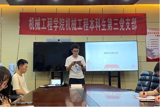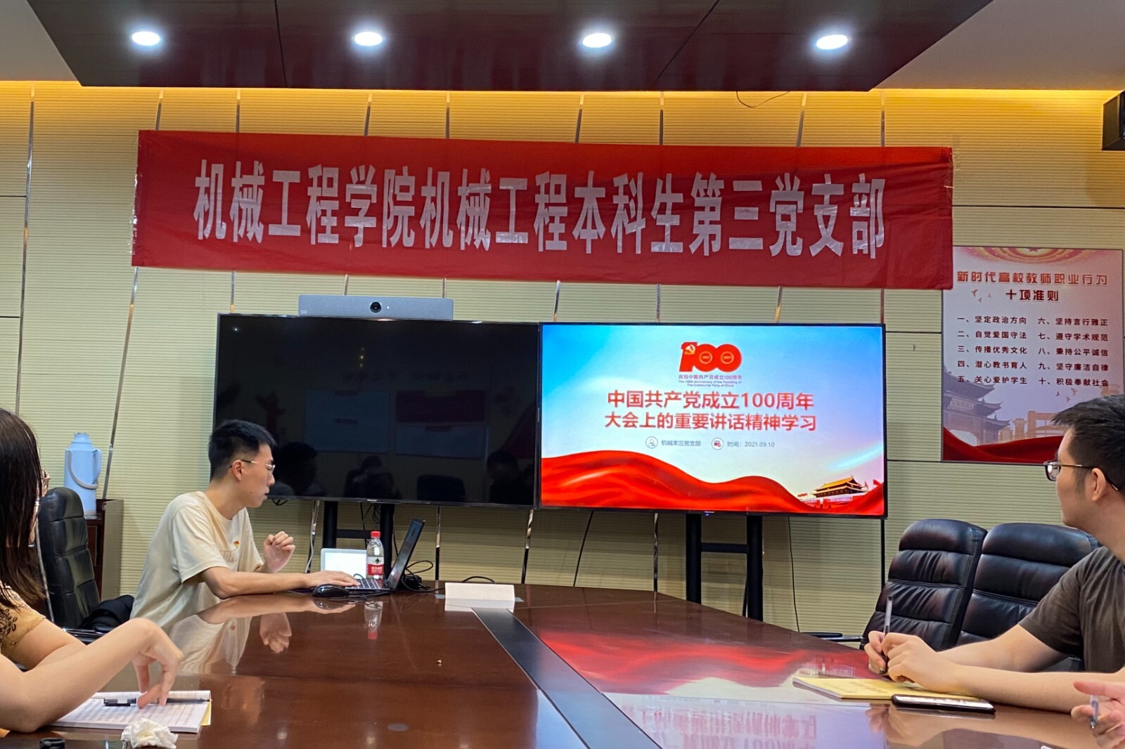 2021年9月10晚19:00点,机械本三党支部于浙江大学玉泉校区教一411会议室召开了组织生活会,会议以中国共产党成立100周年大会上的重要讲话精神学习为主题,主要内容包括学习四个伟大成就、九个必须,读书心得分享以及批评与自我批评,贯彻落实“两学一做”精神。会议由支部书记苑艺修同志主持。