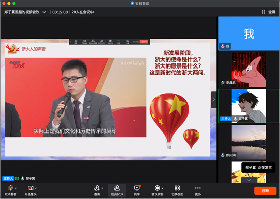 最后,同学们就这场大讨论有什么意义、浙江大学的使命愿景、未来成为怎么样的人这三个问题进行了思考,李文煜同学还发表了自己的看法。