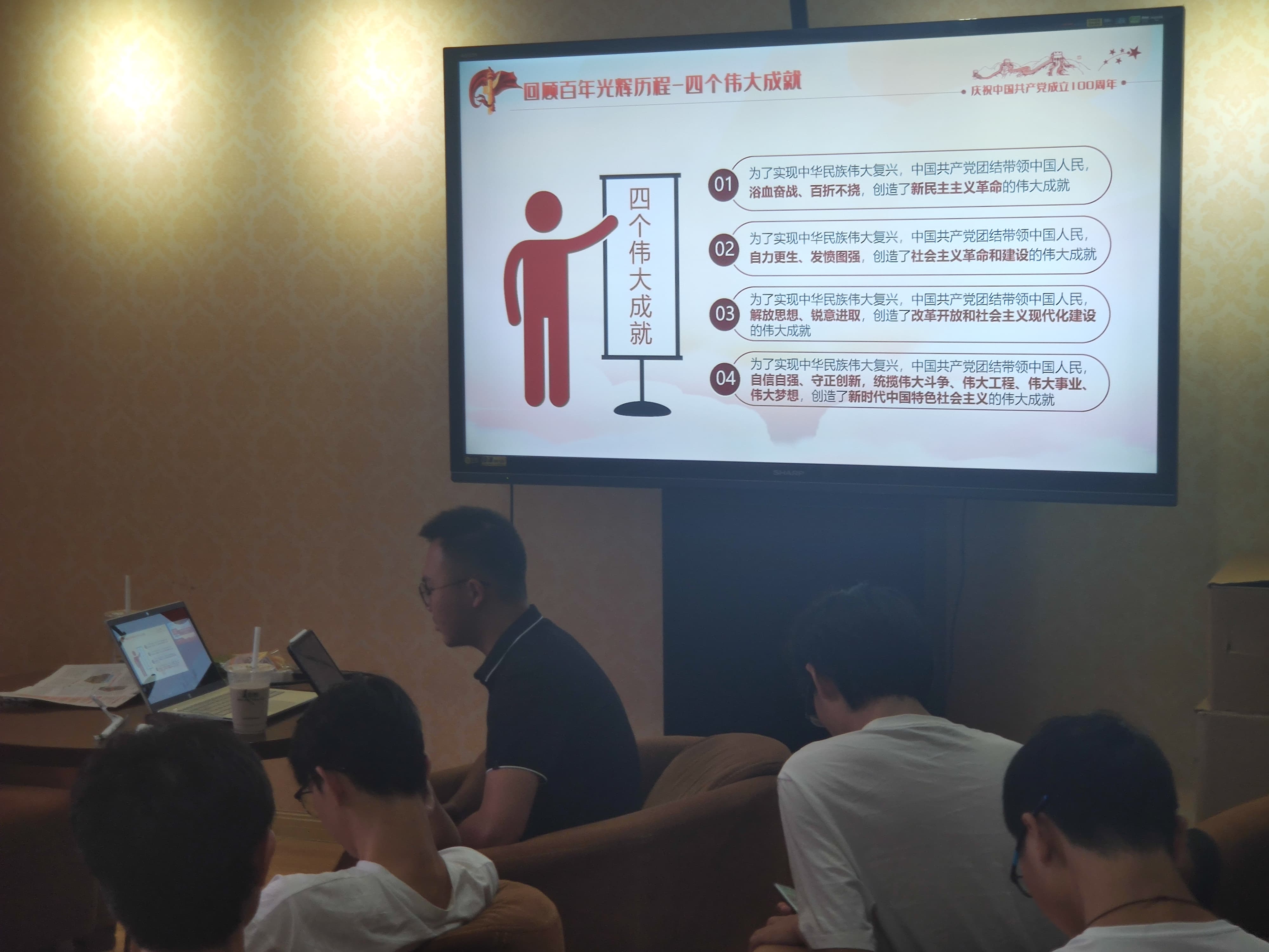 首先进行的是党史学习,石大杭以习近平总书记“七一”重要讲话为起点,将本次讲话总结为以下四个部分,一:回顾党的百年光辉历程,实现了四个伟大成就;二:开创美好未来所需遵守的九个必须;三:党寄予新时代中国青年的希望;四:号召全国各民族紧密团结,实现中华民族复兴的伟大中国梦。