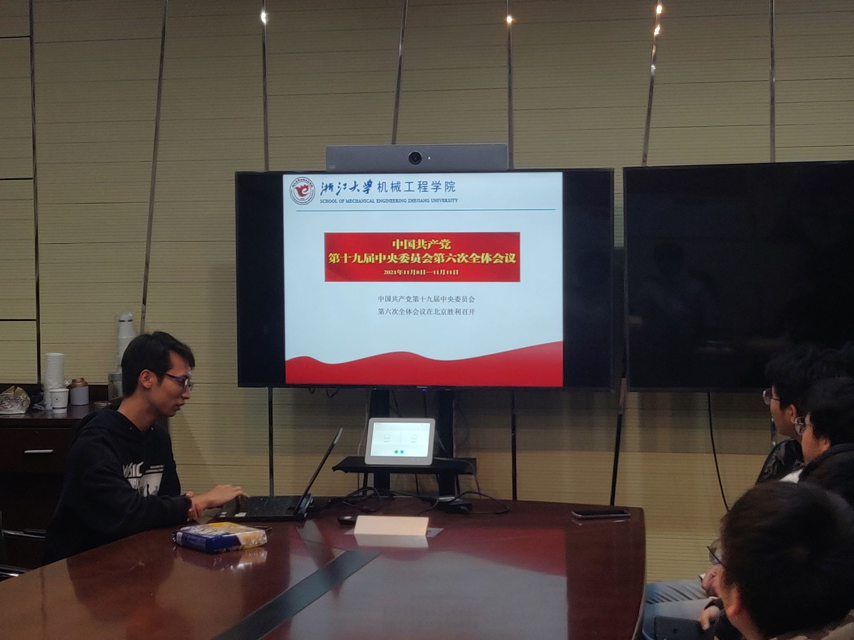 2021年12月5日晚20:30,浙江大学机械1903团支部于浙江大学玉泉校区第一教学大楼411室开展十九届六中全会专题学习会。本次会议由机械1903团支部副书记曹宇恒同学主持。