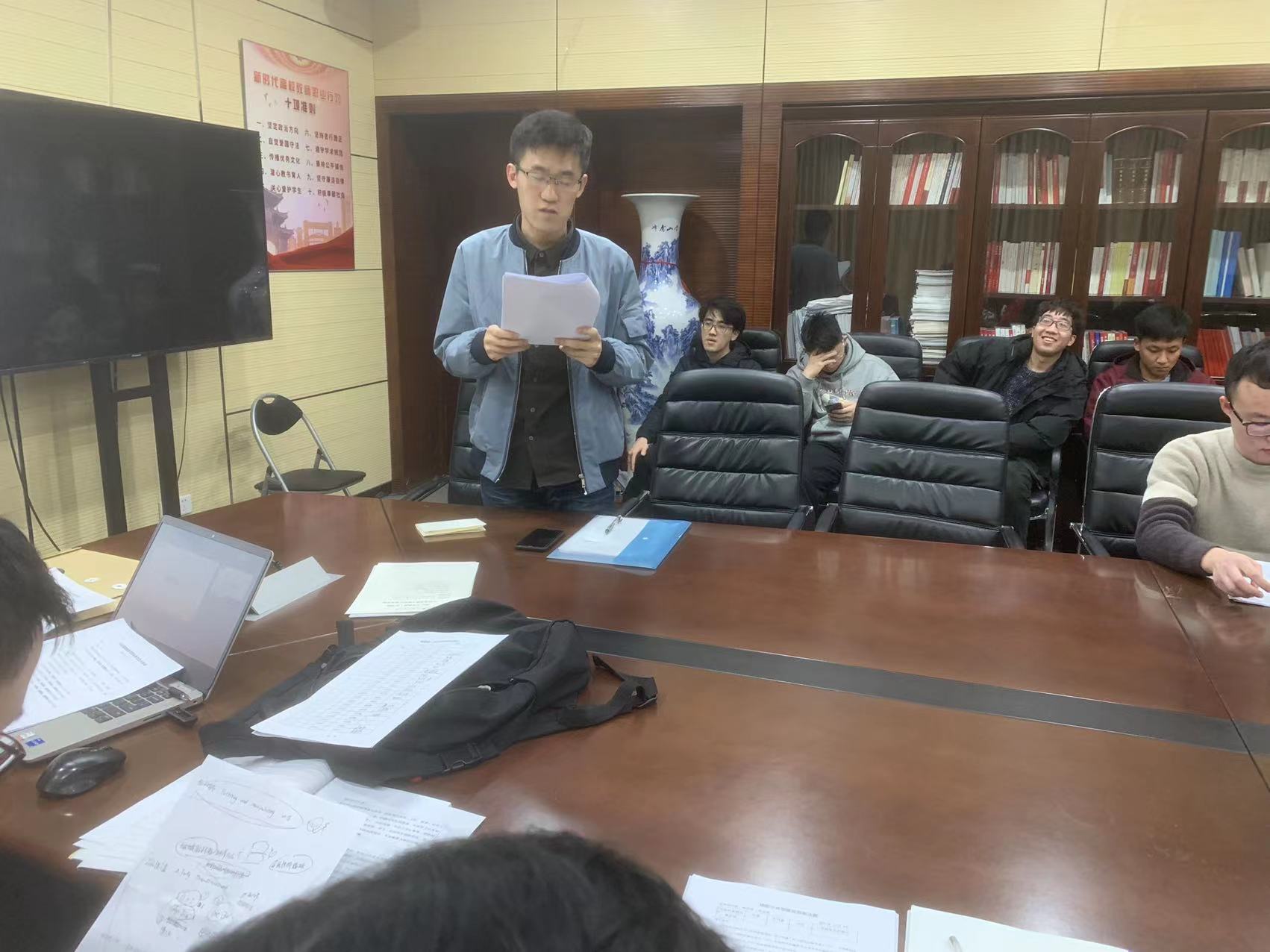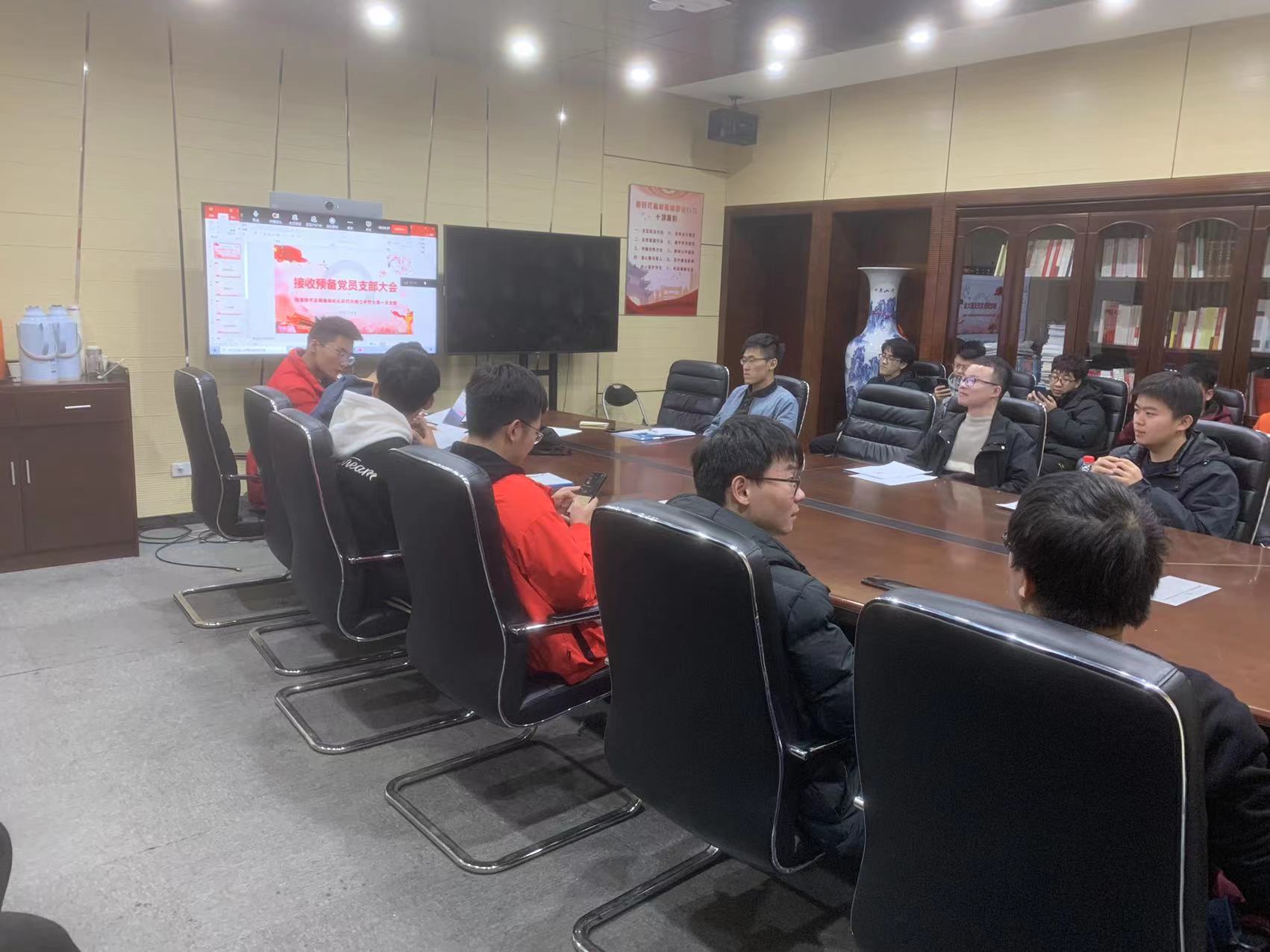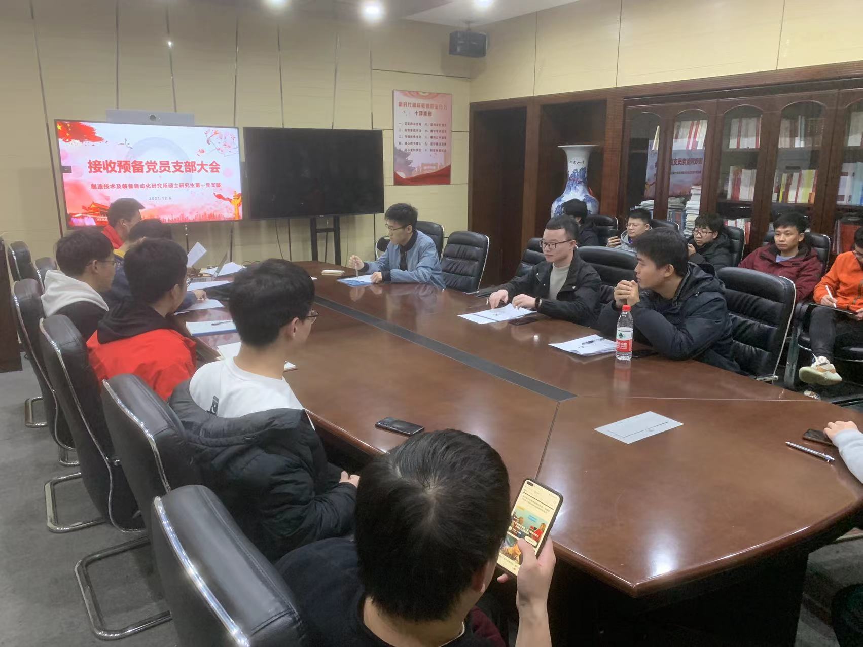 2021年12月6日晚,制造技术及装备自动化研究所硕士研究生第一党支部,于第一教学大楼411会议室举行党员发展大会。会议由梁文龙同志主持,与会党员充分讨论李壮、周泽钰、唐道梵三位发展对象的发展事宜。