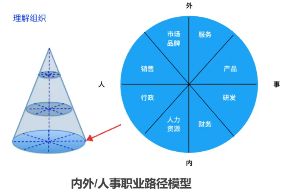 在职业路径模型部分,吴老师将一个组织的所有岗位转化为下图所示的金字塔模型,并指出现在企业管理趋于扁平化形式,这给我们年轻人提供了更多展示才华的机会。
