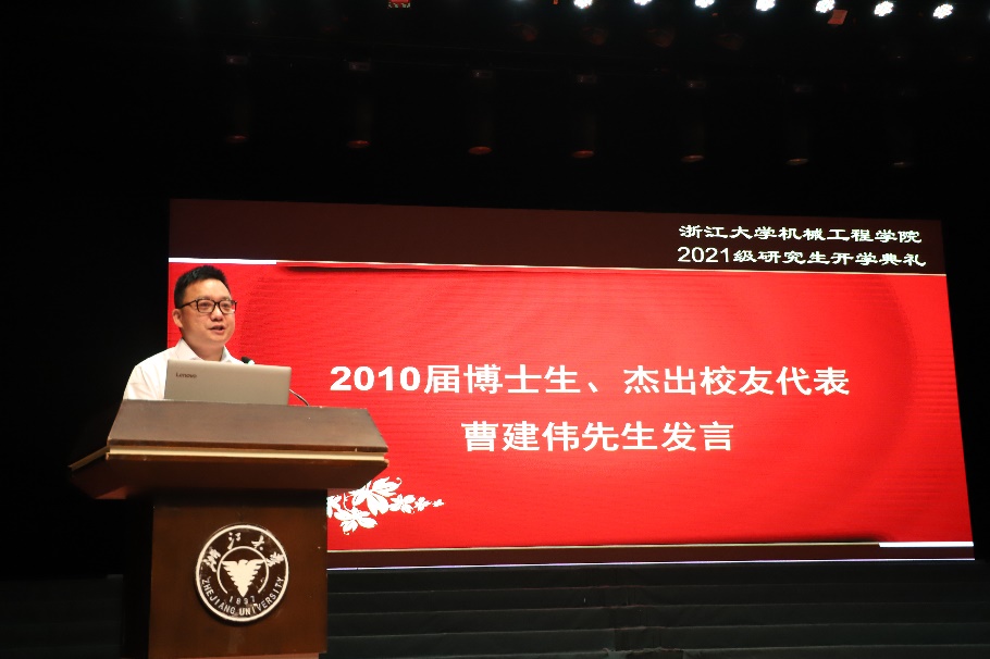 9月12日下午,就业创业导师、晶盛机电公司董事长曹建伟博士受学院邀请,特地来到玉泉,为全体2021级研究生新生做专题分享。曹建伟首先表达了对学校学院老师的感谢,并向同学们讲述了自己在浙大求学、初创企业、如何带领企业转型升级并成功上市、如何成为国内乃至国际上单晶硅炉生产行业的领先企业的经历。曹博士还在发言中与学弟学妹分享了两个重要观点:一是国家发展离不开硬科技,我们需要钻研基础的核心技术;二是要发展硬科技需要有马兰精神,要有十年磨一剑的决心。曹博士的分享让所有新生深感振奋和启发。