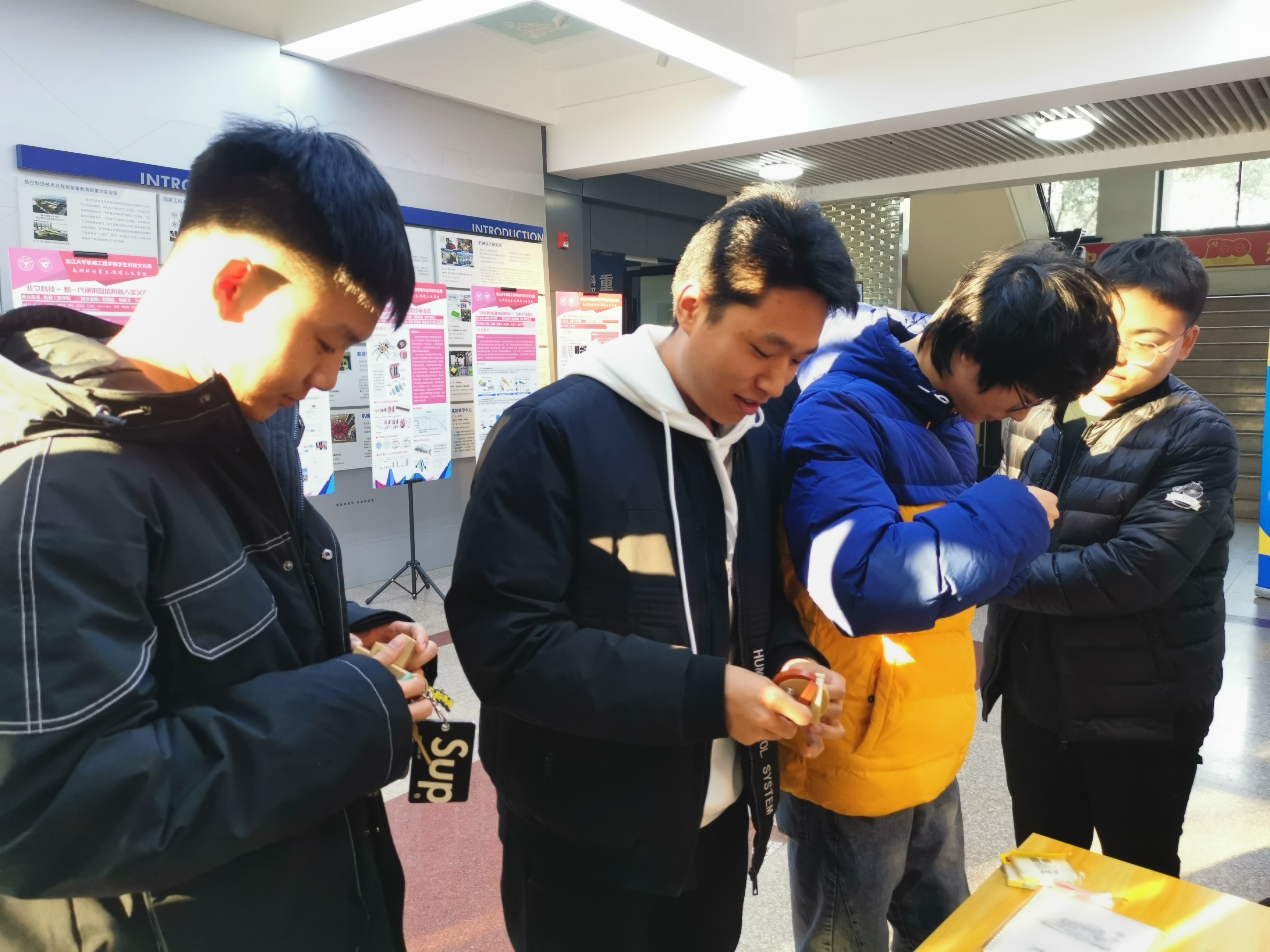 为了能够更好的激发同学们的积极性同时吸引更多的同学参与活动。科创中心小组成员为现场参观的同学提供了多款科技益智类小游戏。其中“数字华容道”游戏考验了同学们多维度观察与数字推理的能力;“孔明锁”,曾广泛流传于民间,逐渐得到人们的重视,它对放松身心,开发大脑,灵活手指均有好处。让同学们在轻松愉快的氛围中,不仅仅获得了快乐,同时能够感悟科创思维对每个人的重要性。