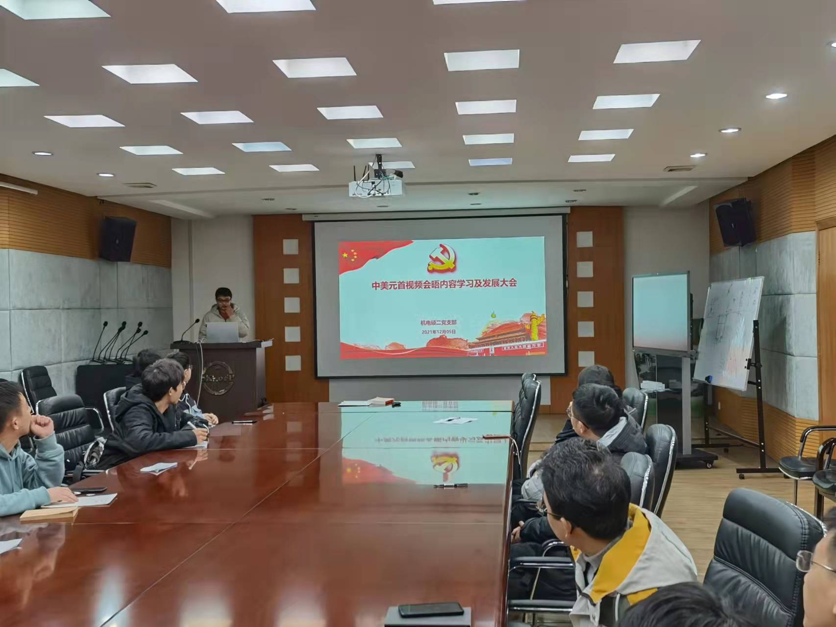 2021年12月5晚19:00点,机电硕二党支部于浙江大学玉泉校区液压老楼4楼会议室召开了学习中美元首视频会晤内容,以及党支部发展大会。会议由支部书记朱恒双同志主持。