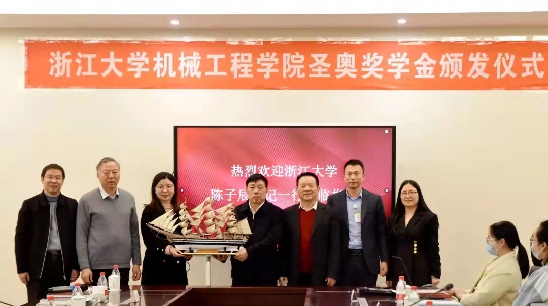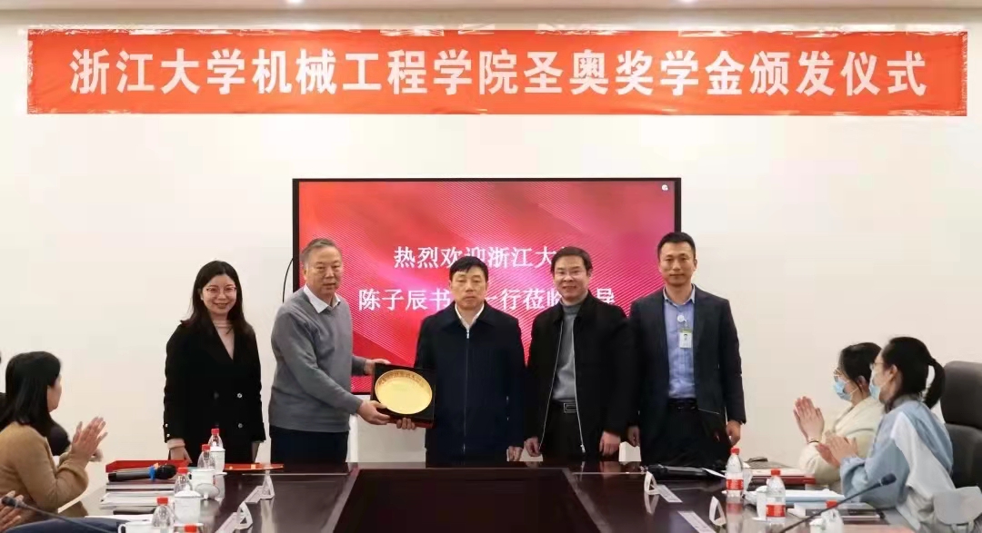 2022年1月10日下午,浙江大学机械工程学院赴圣奥集团交流活动在位于萧山的圣奥科创园顺利举行。圣奥集团董事长、圣奥慈善基金会主席倪良正先生,浙江圣奥慈善基金会会长、浙江大学校友郑明治先生,圣奥集团人力资源中心总经理、圣奥慈善基金会理事尹志远先生,浙江圣奥慈善基金会理事长杨新妃女士出席会议。浙江大学发展委员会副主席、党委原常务副书记陈子辰教授,学院常务副院长居冰峰教授,学院党委副书记项淑芳老师、俞磊老师,学院退休教师党支部书记施岳定老师、朱聘和老师,学院团委书记王芳官老师,学院团委副书记金娟霞老师、张瑜彬老师、陈熠钧老师及20余名学生参加会议。会议由学院党委副书记俞磊老师主持。