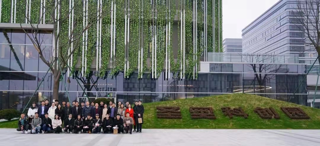 会后,与会人员合影留念,并参观了新落成的圣奥科创园。圣奥科创园是一个集“产品创新研发、家具制造打样、场景化体验、家具检测、木工体验、行业信息交流、人才教育培训、电商直播、新品发布等于一体”等功能于一体的产业园,圣奥科创园秉承“自然美好”的设计理念,将6幢建筑以航母曲线围合而成,并利用清水混凝土、木、水、光、空间等自然元素,形成独特的建筑美学,整体建筑群彰显了科技感和国际范,其“将大自然搬进办公室”的理念深深地吸引了大家,师生们对圣奥集团的发展理念深感钦佩。