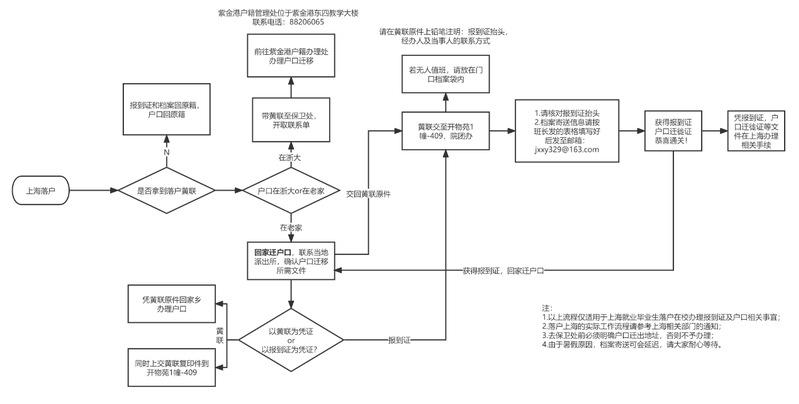1. 落户上海/北京的同学,请根据流程办理报到证开具、户口迁移及档案转递