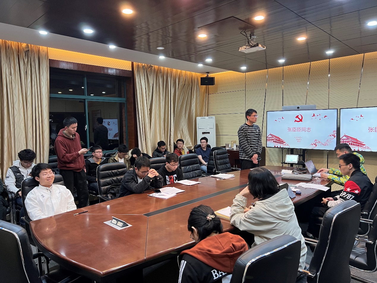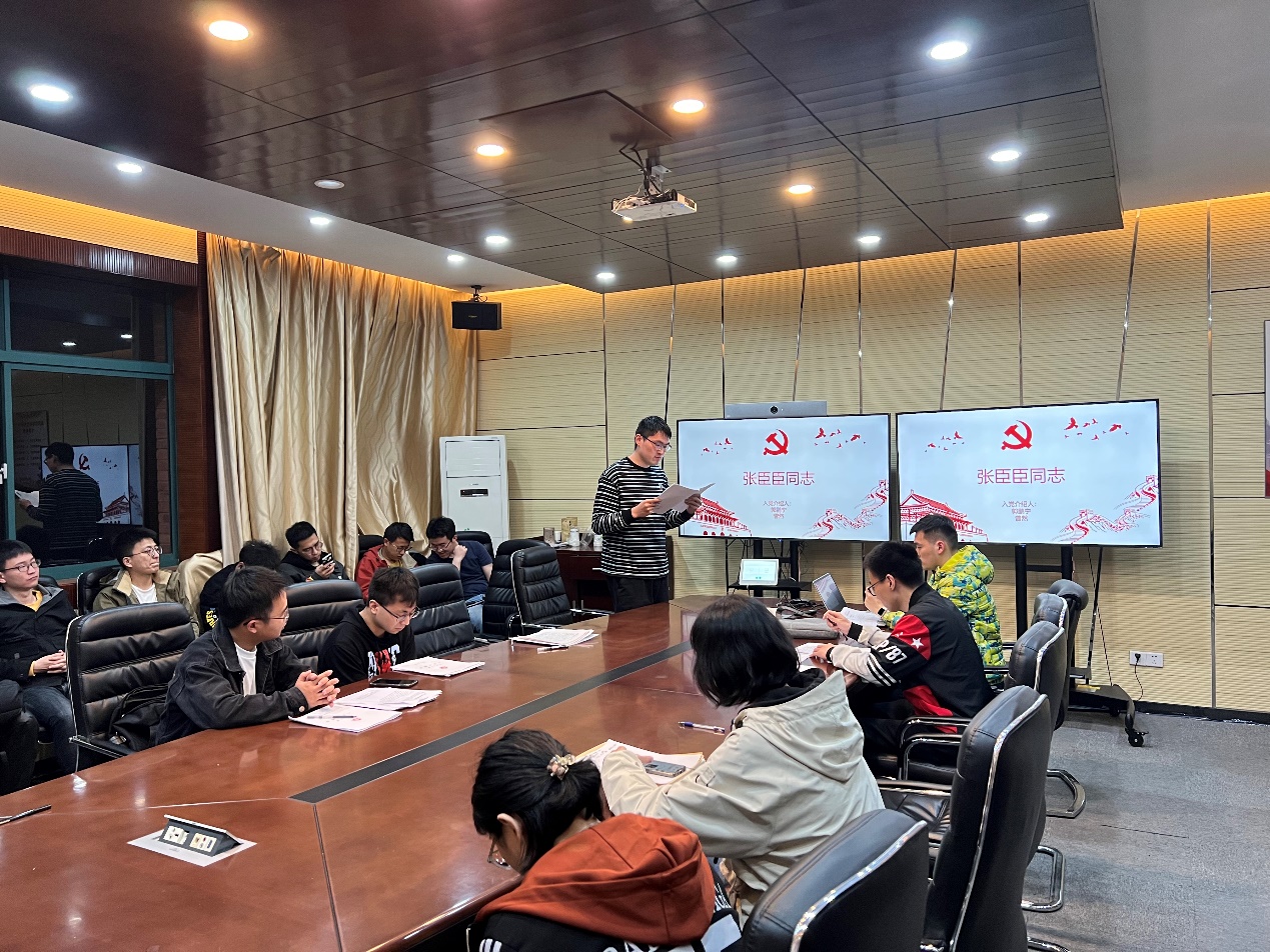 大会第二项是关于张臣臣同志发展讨论, 2022年3月张臣臣同志发展对象期满3月。会议期间由张臣臣同志宣读入党志愿书以及对自己成为积极分子期间的表现、缺点等发表感悟,并由本支部成员郭鹏宁以及曾然同志作为入党介绍人宣读意见,以及与会同志的积极讨论,入校后其他党员同志与张臣臣同志的谈话情况汇报,张臣臣同志对于其自身存在问题以及其他党员同志对其建议表态,最后由书记宣布张臣臣同志通过,顺利成为预备党员。