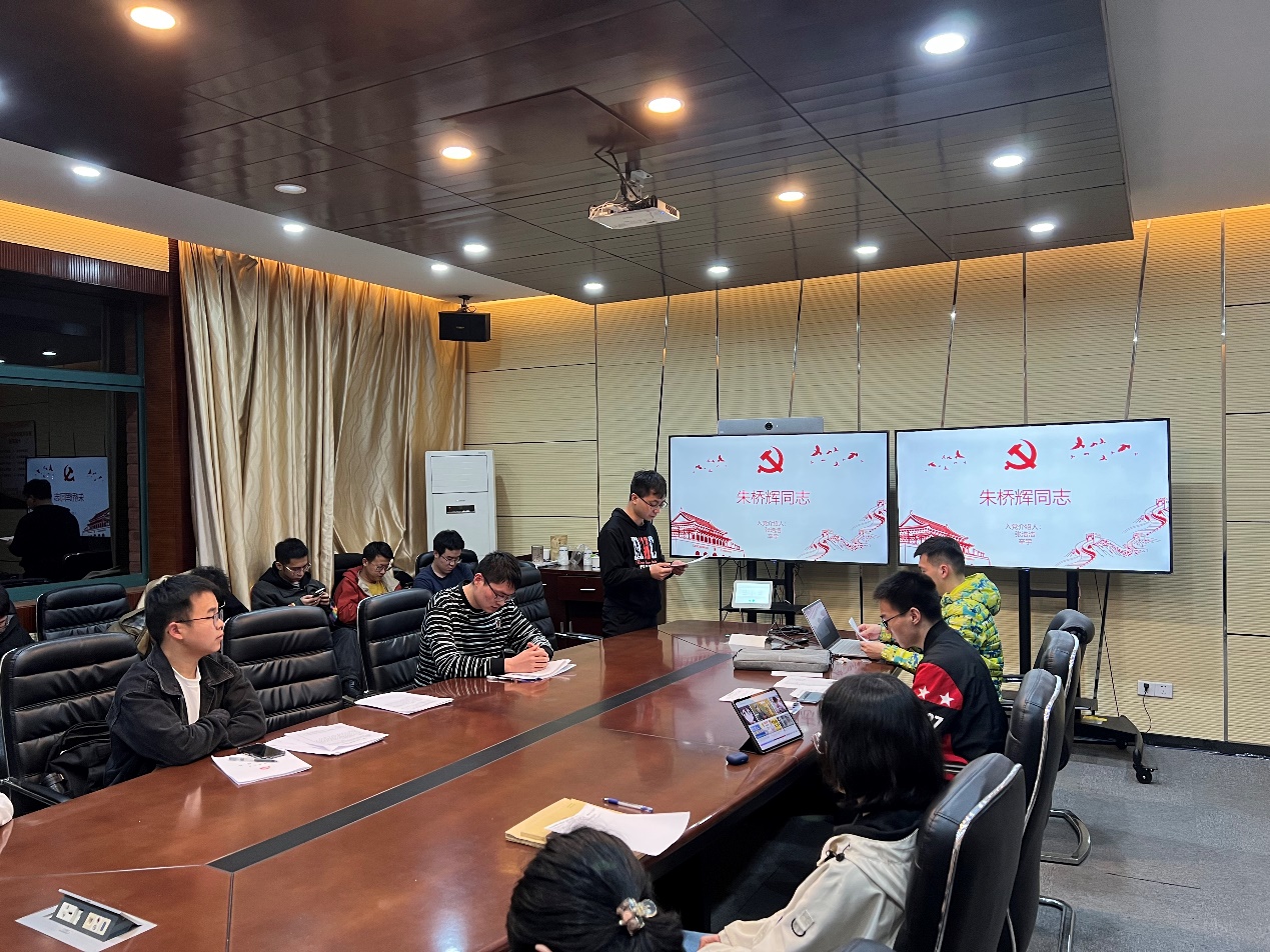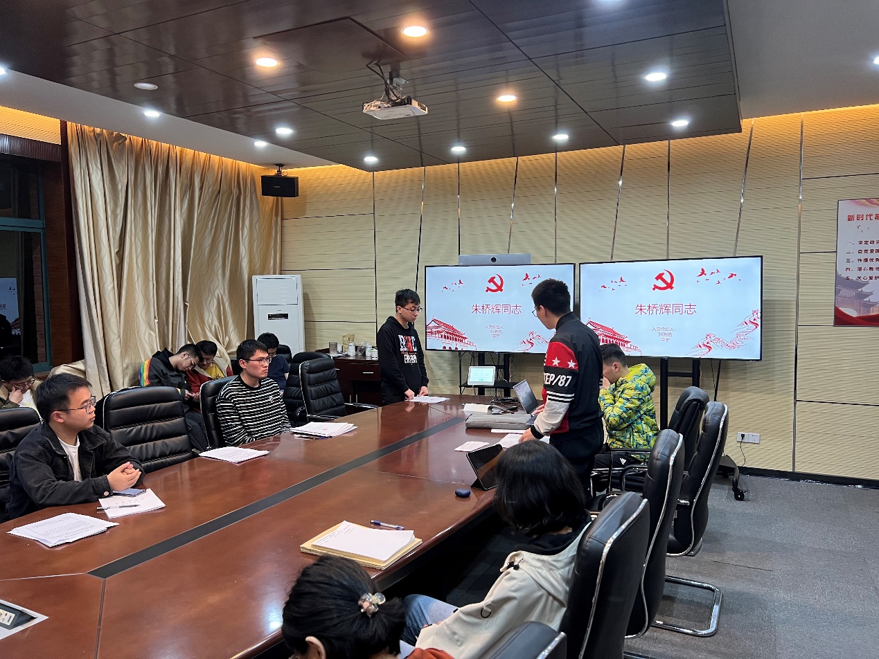 大会第三项是关于朱桥辉同志发展讨论,2022年3月朱桥辉同志发展对象期满3月。会议期间由朱桥辉同志宣读入党志愿书以及对自己成为积极分子期间的表现、缺点等发表感悟,并由本支部成员张浩浩以及辛宇同志作为入党介绍人宣读意见,以及与会同志的积极讨论,入校后其他党员同志与朱桥辉同志的谈话情况汇报,朱桥辉同志对于其自身存在问题以及其他党员同志对其建议表态,最后由书记宣布朱桥辉同志以全票通过,顺利成为预备党员。
