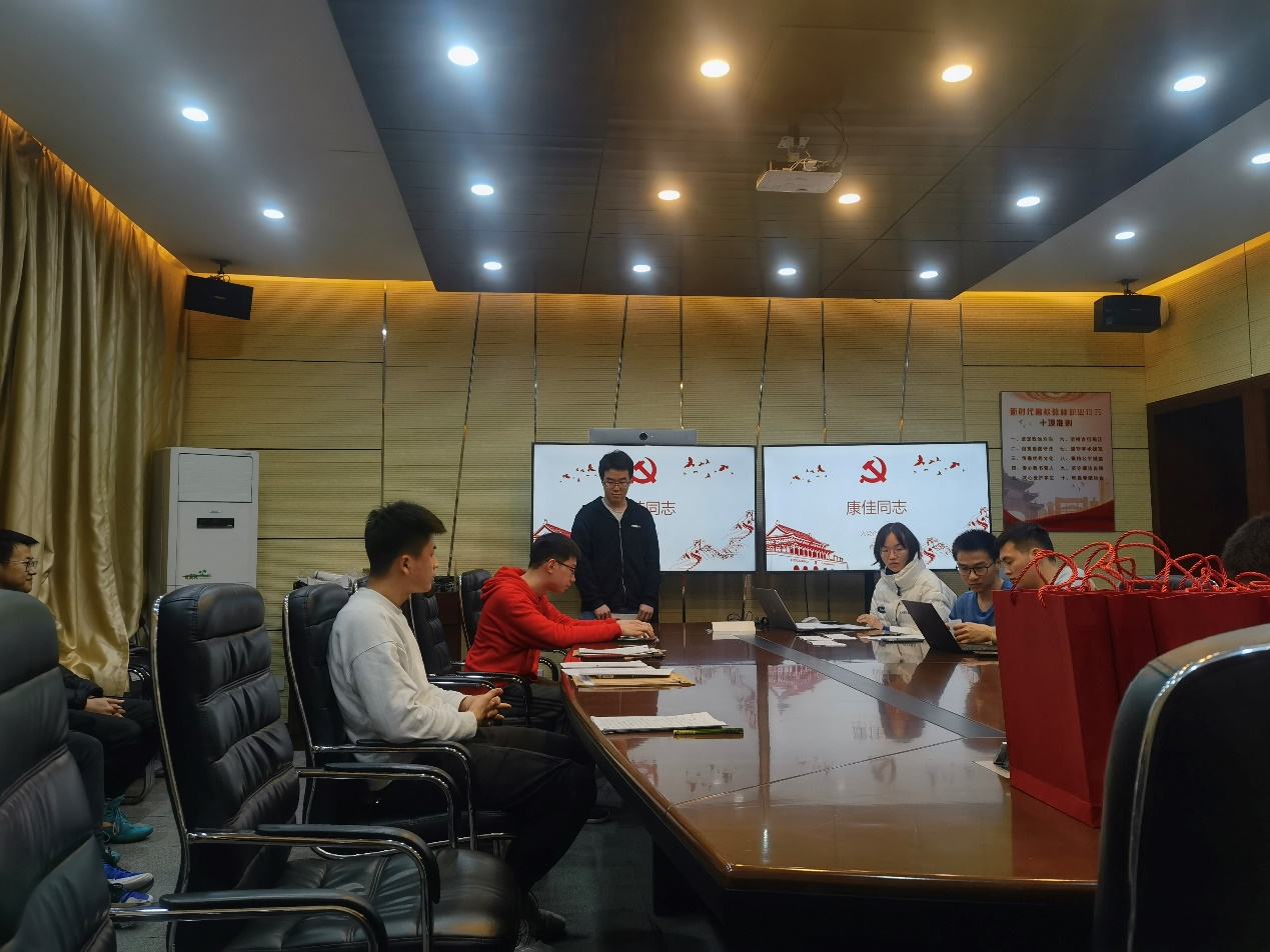 大会第一项是关于康佳同志转正讨论,康佳同志于2022年3月份满预备期一年。会议期间由康佳同志宣读转正申请书以及对自己在转正期间的表现、缺点等发表感悟,并由本支部成员王振以及俞维文同志作为入党介绍人宣读入党介绍人意见,以及与会同志的积极讨论,入校后其他党员同志与康佳同志的谈话情况汇报,康佳同志对于其自身存在问题以及其他党员同志对其建议表态,最后由书记宣布康佳同志以全票通过,顺利转正。
